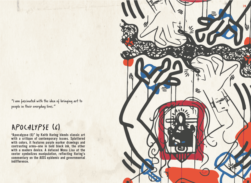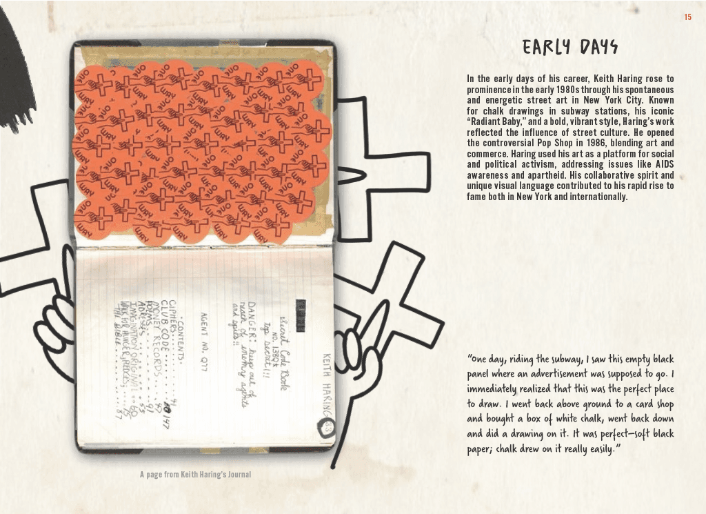 Art in Action is a conceptual exhibition featuring a book inspired by Keith Haring's sketchbook